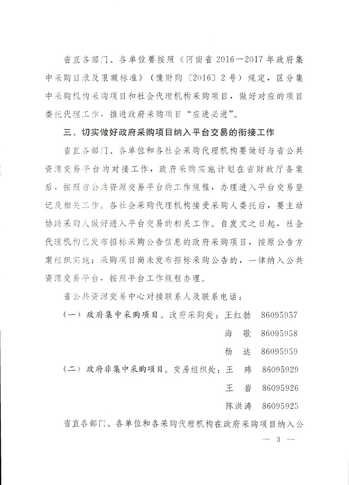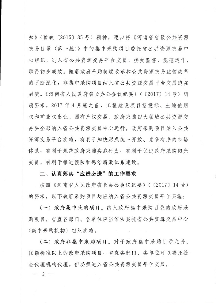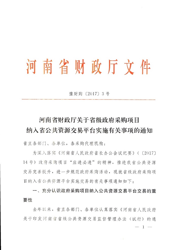 河南省财政厅关于省级政府采购项目纳入省公共资源交易平台实施有关事项的通知