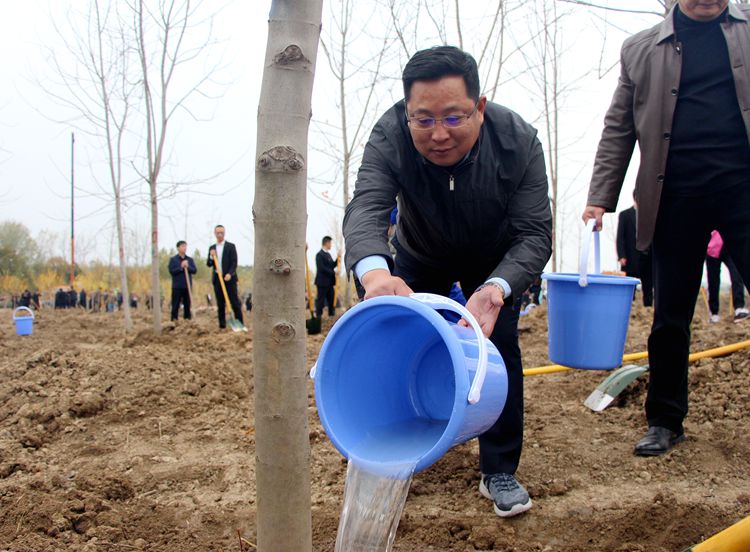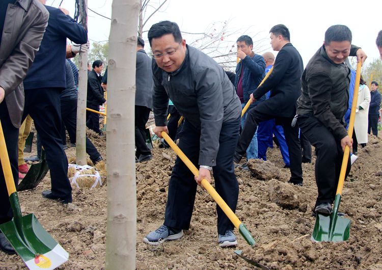 植树间隙,李中华不时与身边的抗洪英雄模范及重点企业代表交流,并向市林业局负责人询问了解树木品种、成活率、土壤墒情、植树面积等情况。他指出,抓国土绿化就是抓生态文明建设,今天多栽一棵树,明天大地就多增一片绿。要广泛动员全市干部群众深入开展造林绿化活动,自觉爱绿、植绿、护绿、兴绿,用实际行动践行习近平生态文明思想,迅速掀起国土绿化提速行动热潮,为森林河南建设贡献永城力量。要多栽树、栽好树,坚持科学植树,栽管并重,切实养护好、管护好新植树苗,千方百计提高成活率,保质保量圆满完成植树造林任务,进一步巩固生态建设成果,让人民群众更好享受绿色发展带来的实惠。