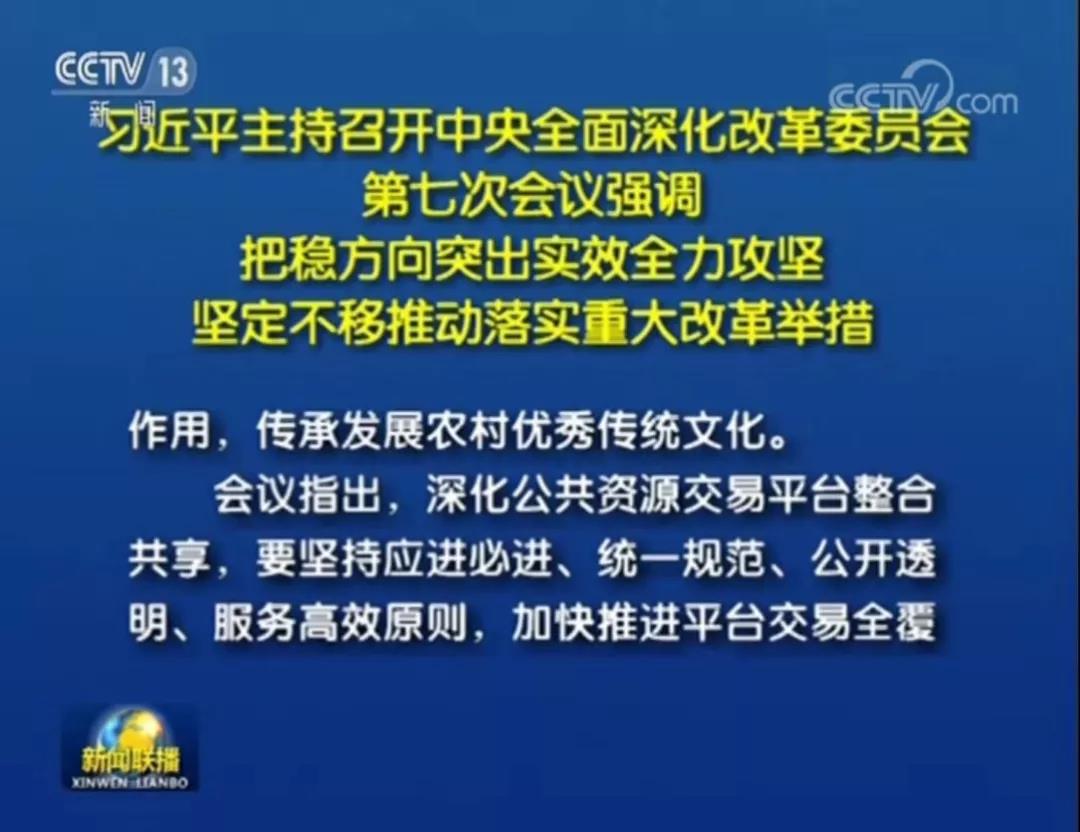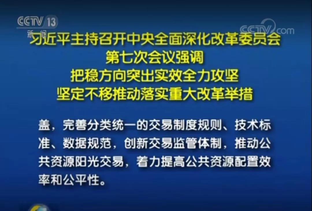 3月19日,中央全面深化改革委员会召开了第七次会议,审议通过了《关于深化公共资源交易平台整合共享的指导意见》(以下简称《指导意见》)等文件。