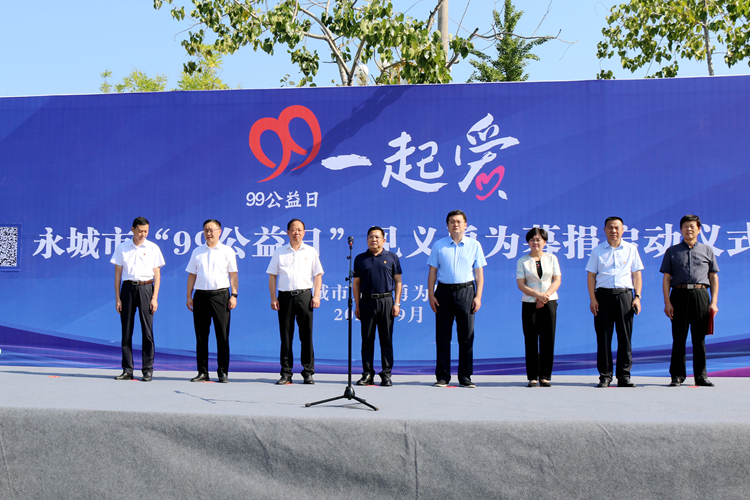 9月7日上午,永城市“99公益日”见义勇为募捐启动仪式在市人民广场举行。市委书记李中华,市长高大立,市领导李宗岩、王琴芝、栗团结、邵明杰、王磊、梁廷振,市政协原主席、市关工委主任、市见义勇为协会会长欧阳明等出席仪式。