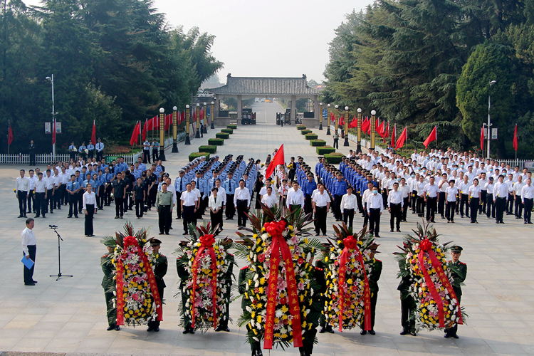 鲜花献英烈,壮志励后人。2020年9月30日是我国第7个烈士纪念日。当日上午,我市在淮海战役歼灭战纪念馆举行2020年烈士纪念日公祭仪式。李中华、高大立、赵志强、李宗岩、王琴芝、卞文灿、栗团结、邵明杰、黑团辉等市领导,同社会各界代表一起怀着无比崇敬的心情参加公祭仪式,向烈士纪念碑敬献花篮。