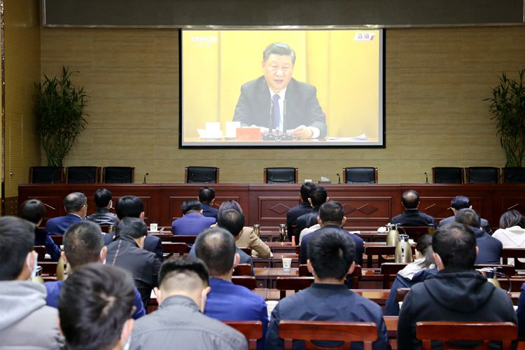 我市市长高大立,市领导赵志强、李宗岩、卞文灿、栗团结、丁振波、梁廷振、张峰等,以及各部委室班子成员和工作人员在市委2号会议室收听收看了大会实况,认真聆听了习近平总书记的重要讲话。