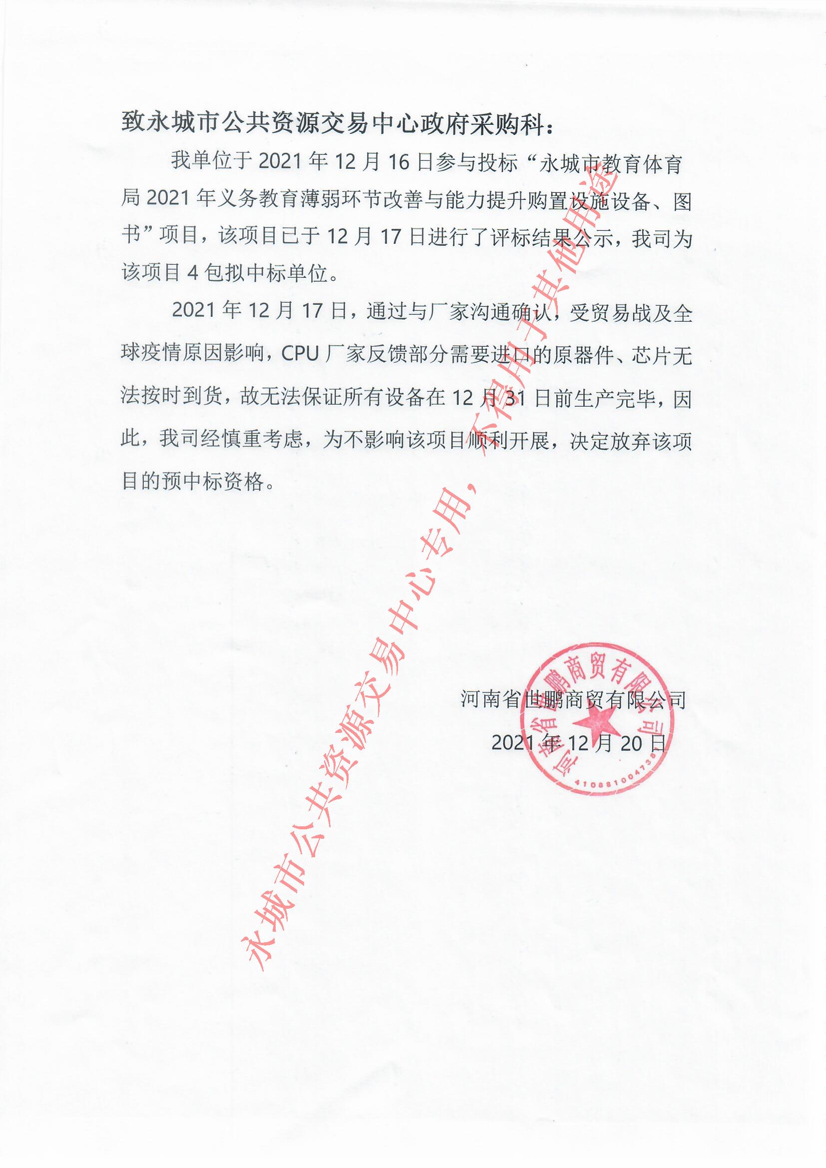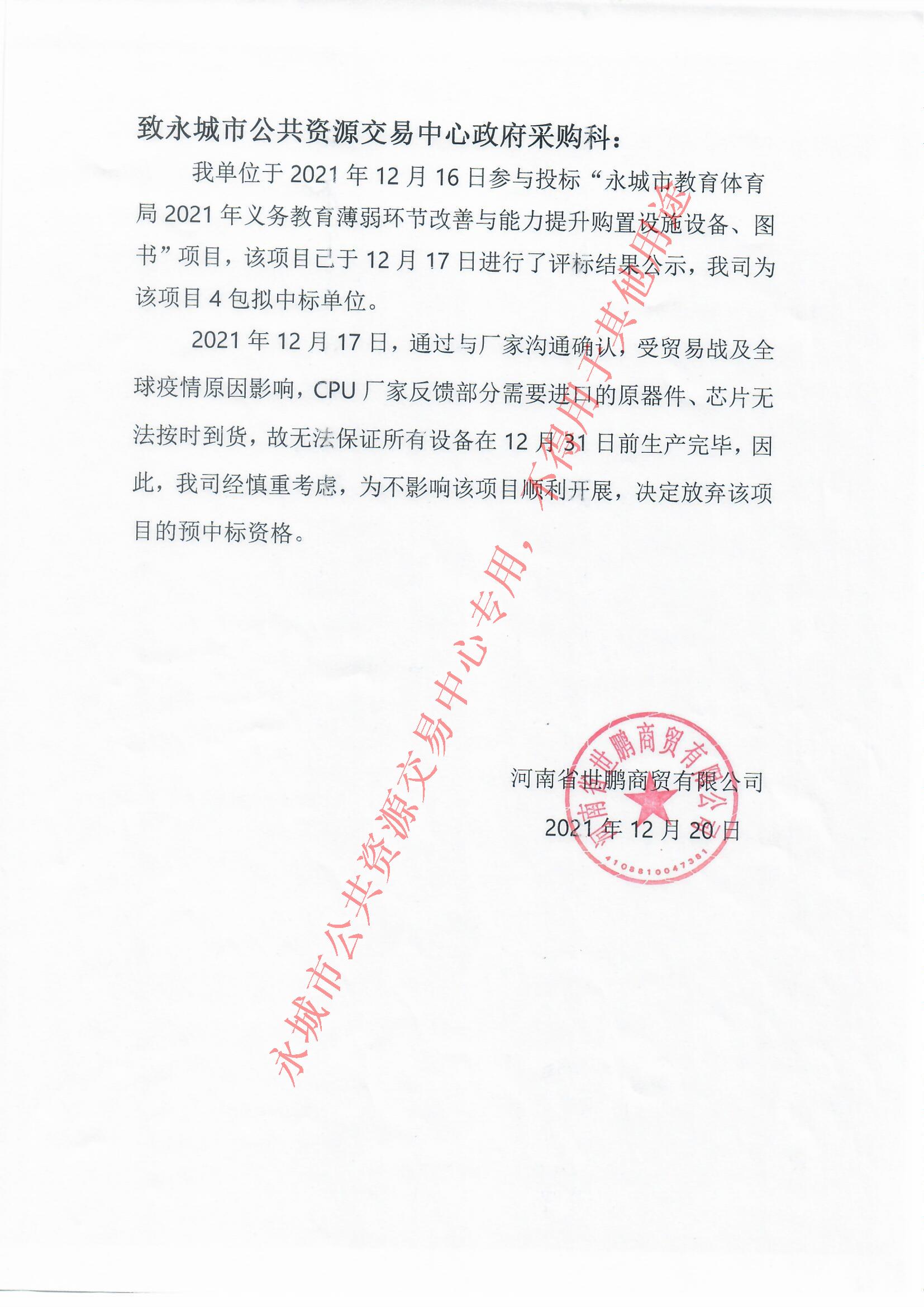 二、项目名称:永城市教育体育局2021年义务教育薄弱环节改善与能力提升购置设施设备、图书项目;