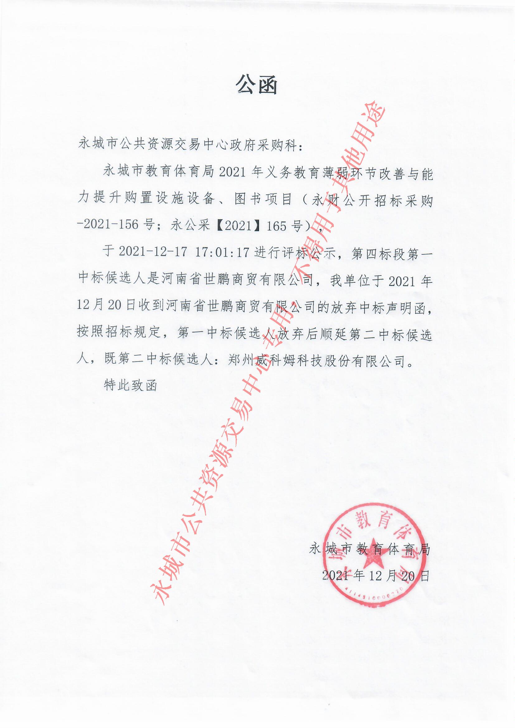 一、项目编号:永财公开招标采购-2021-156;永公采【2021】165号