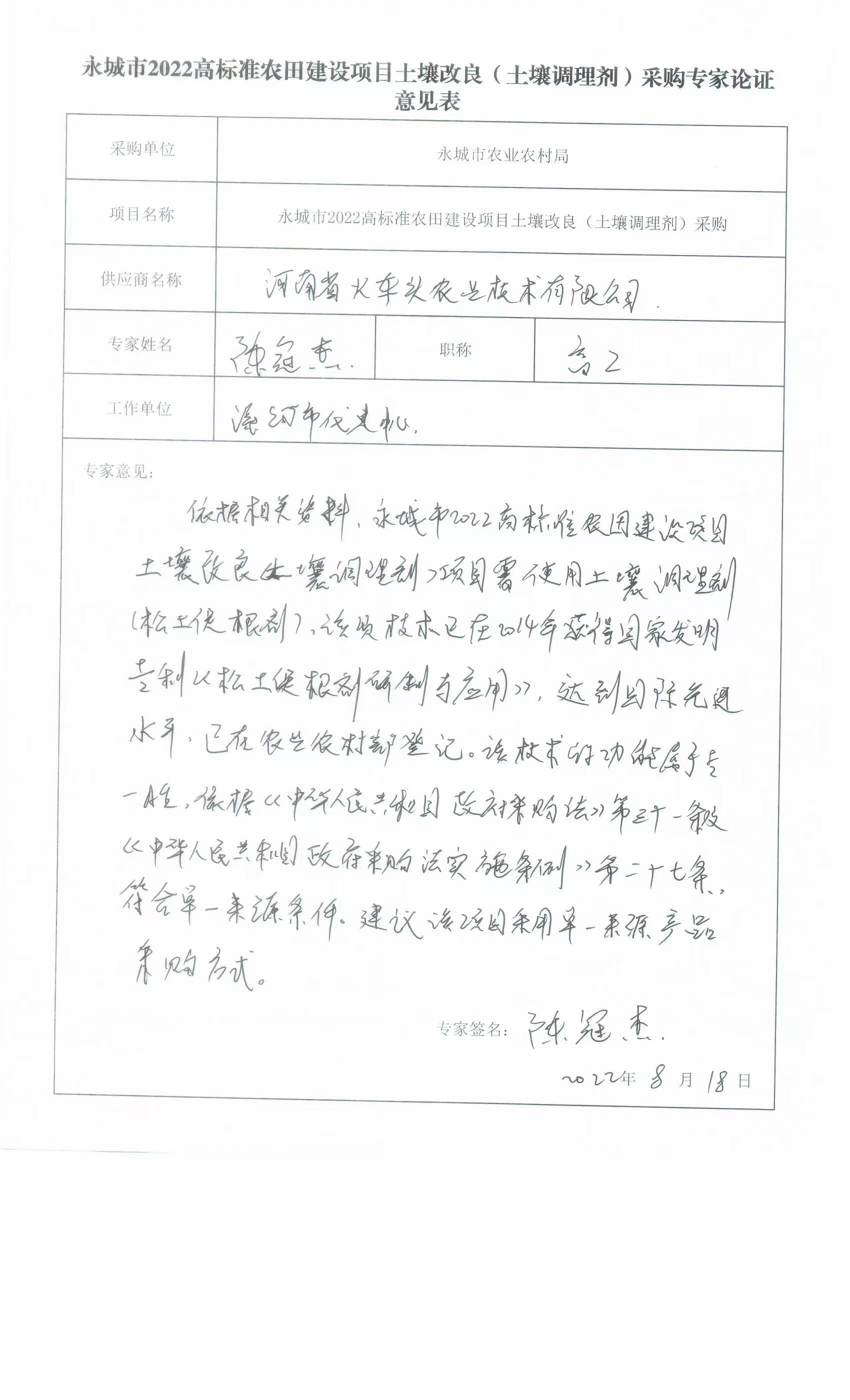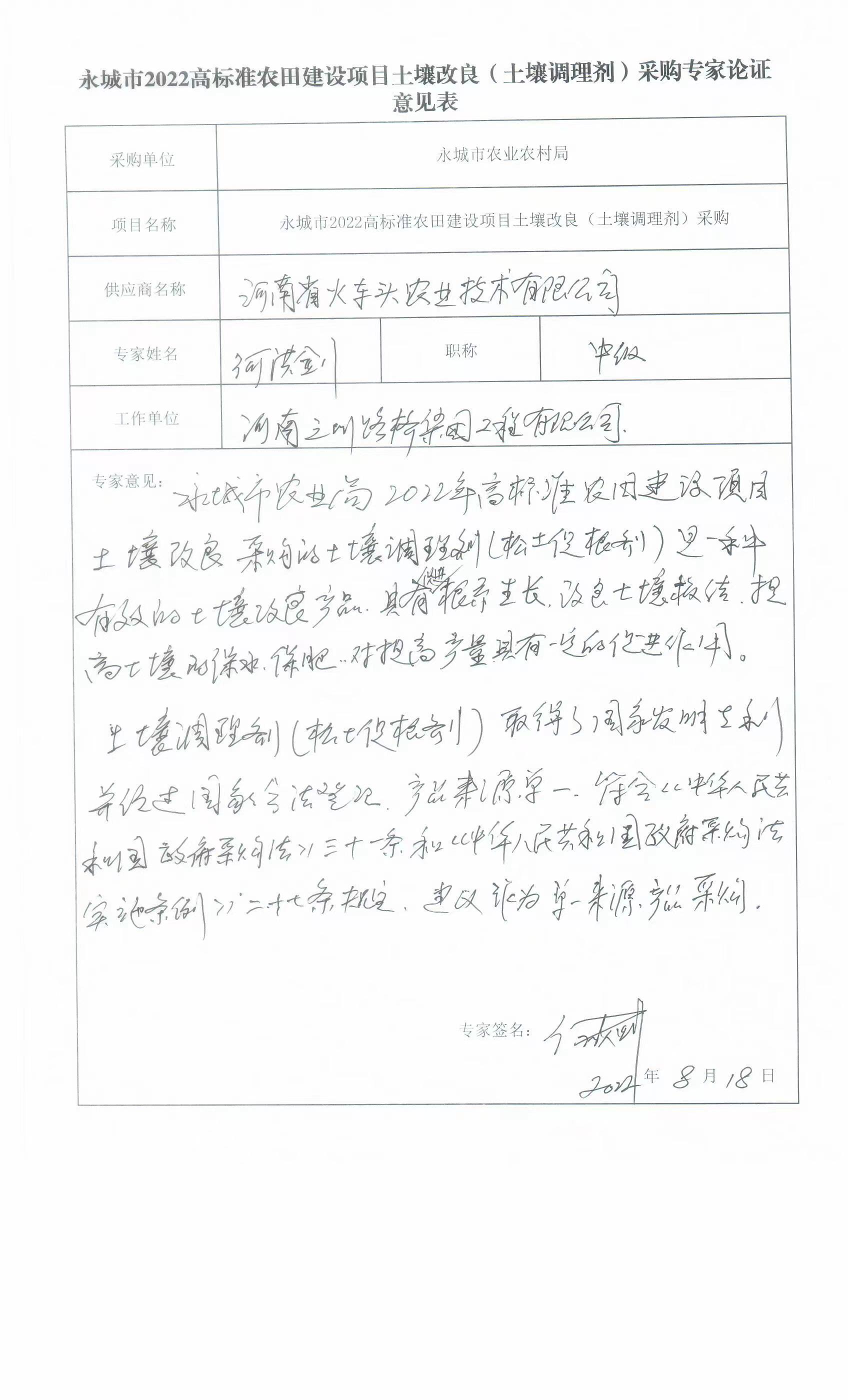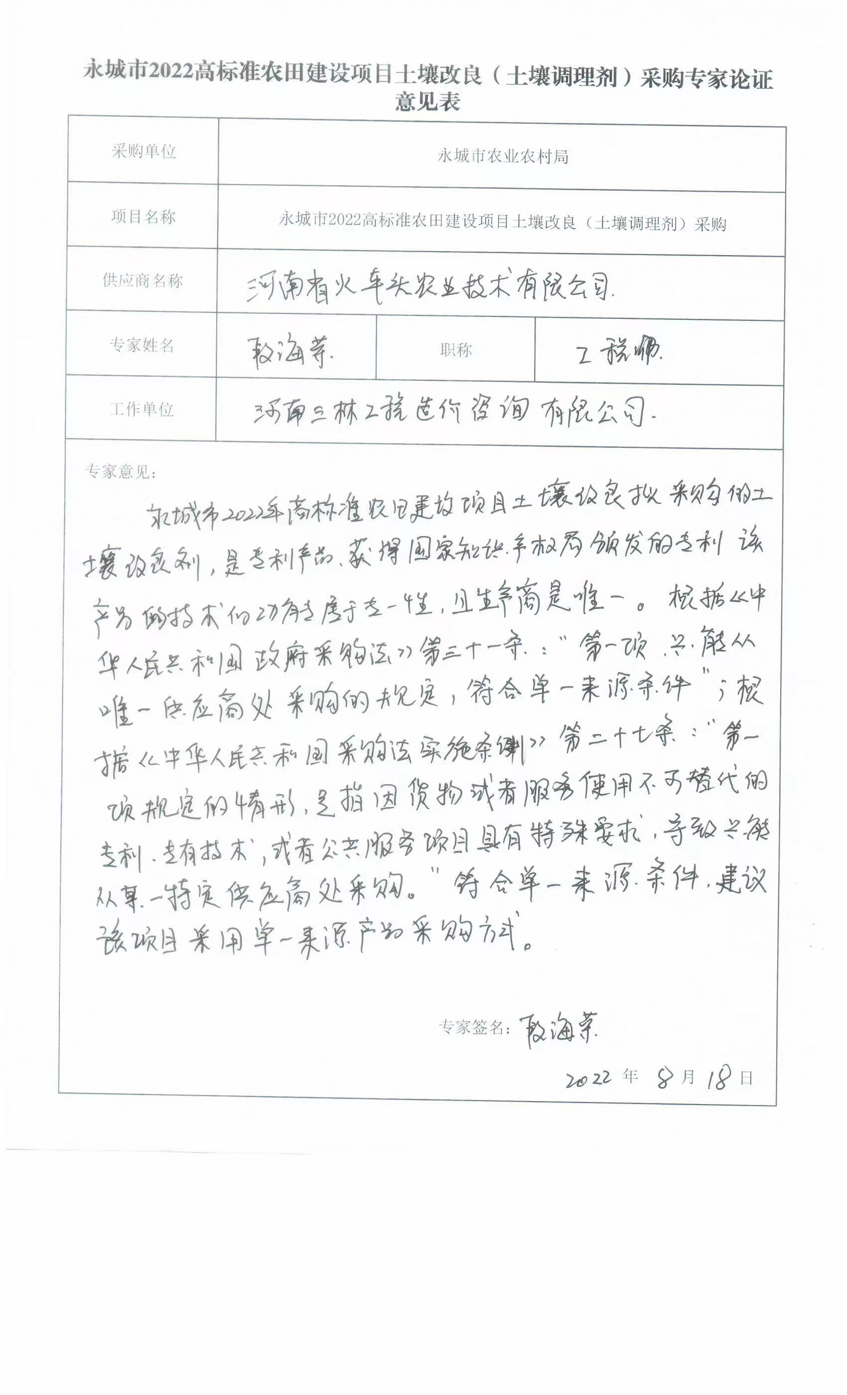 1.论证意见:经查勘资料,该土壤调理剂(松土促根剂)属于发明专利产品,获得国家知识产权局颁发专利(专利号:ZL201310067402.9),该技术的功能属于专一性;在农业农村部登记该技术参数的生产商是唯一,符合“单一来源”采购方式。